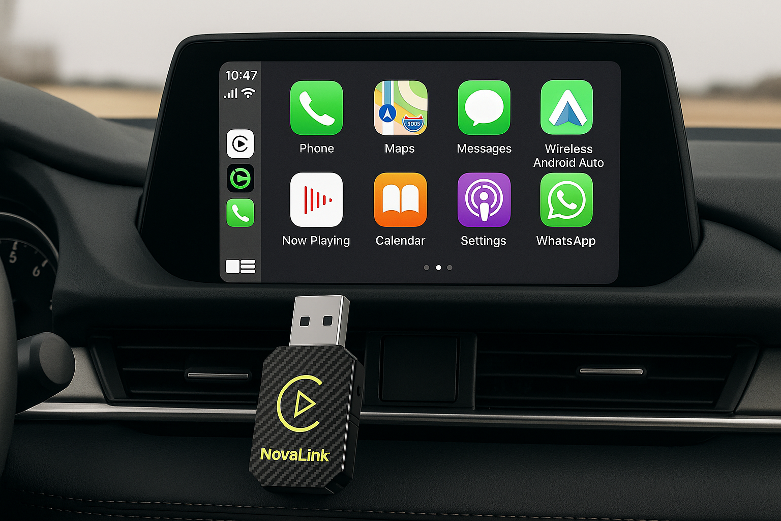 Say goodbye to annoying cables and outdated systems. NovaLink™ instantly converts your factory-wired CarPlay or Android Auto into a fully wireless, plug-and-play setup — no tools, no hassle.